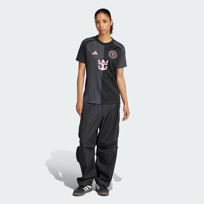 Bring Miami style to the stadium in this elegant Inter Miami CF away jersey from adithtdas. With pink details popping against a black and carbon half-and-half design, this supporter shirt exudes sophistication. Its moisture-managing AEROREADY and soft fabric are there to keep fans comfortable. A club sign-off, sewn-on crest and Messi details show you appreciate first-class soccer.