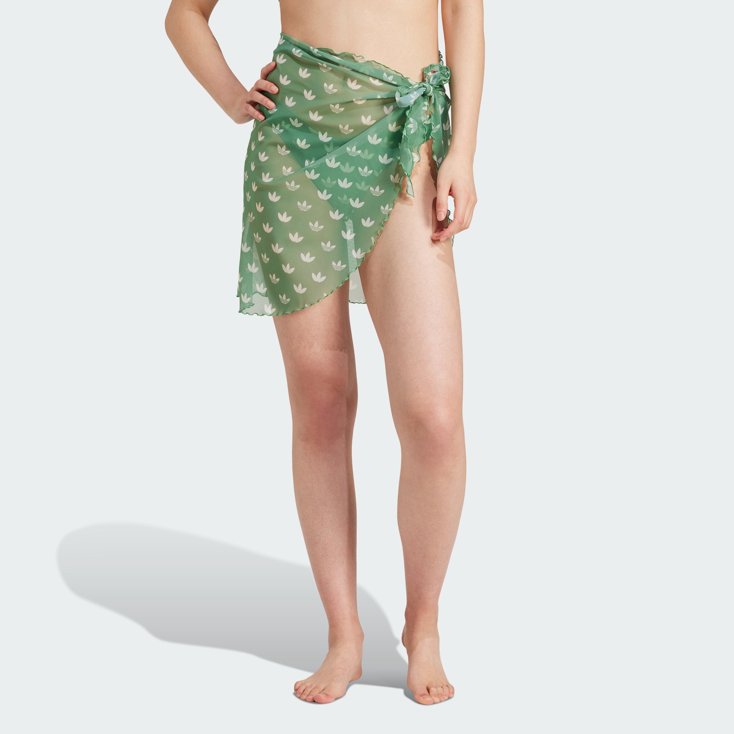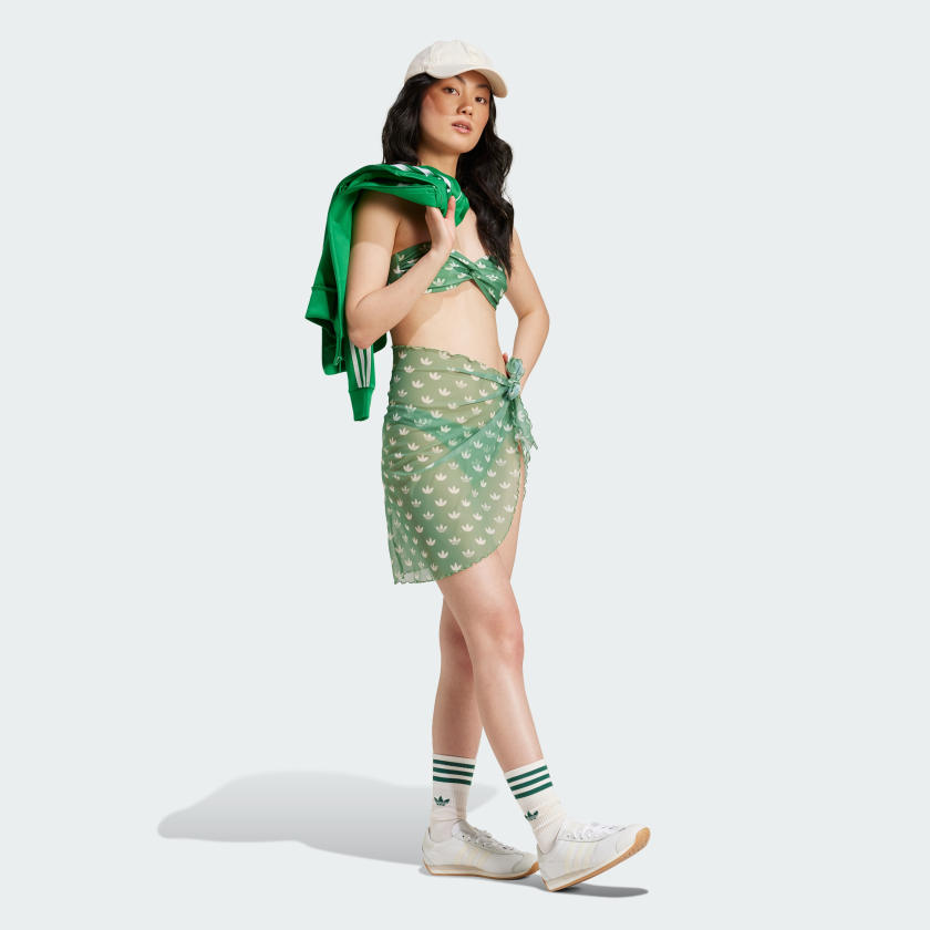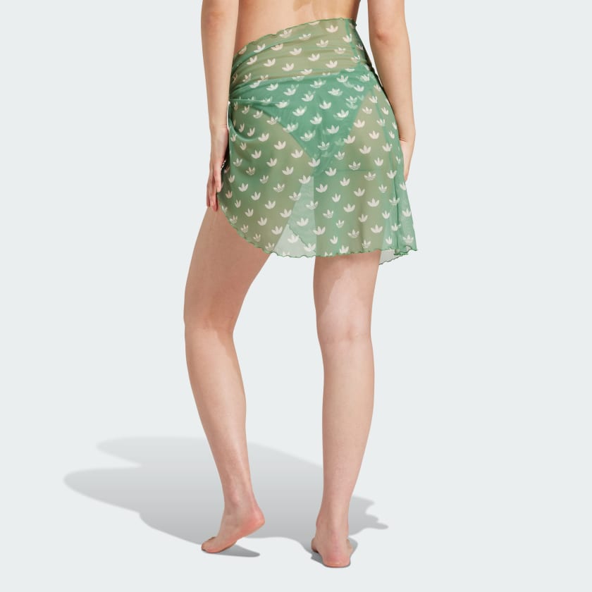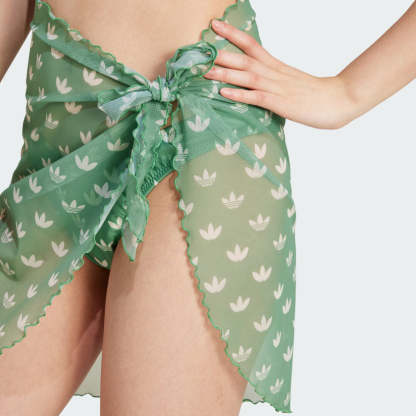 A stylish cover up with an artistic spin, this adithtdas sarong envelops you in a sea of the iconic Trefoil. The modern monogram print cascades over the lightweight silhouette, a perfect complement to sun, sand and surf. Cinch it, tie it, wrap it - this versatile essential moves with you. It's finished with a wavy edge hem, a subtle connection to the ocean and a fashionable sign-off to the whole look.This product is made with at least 70% recycled materials. By reusing materials that have already been created, we help to reduce waste and our reliance on finite resources and reduce the footprint of the products we make.
