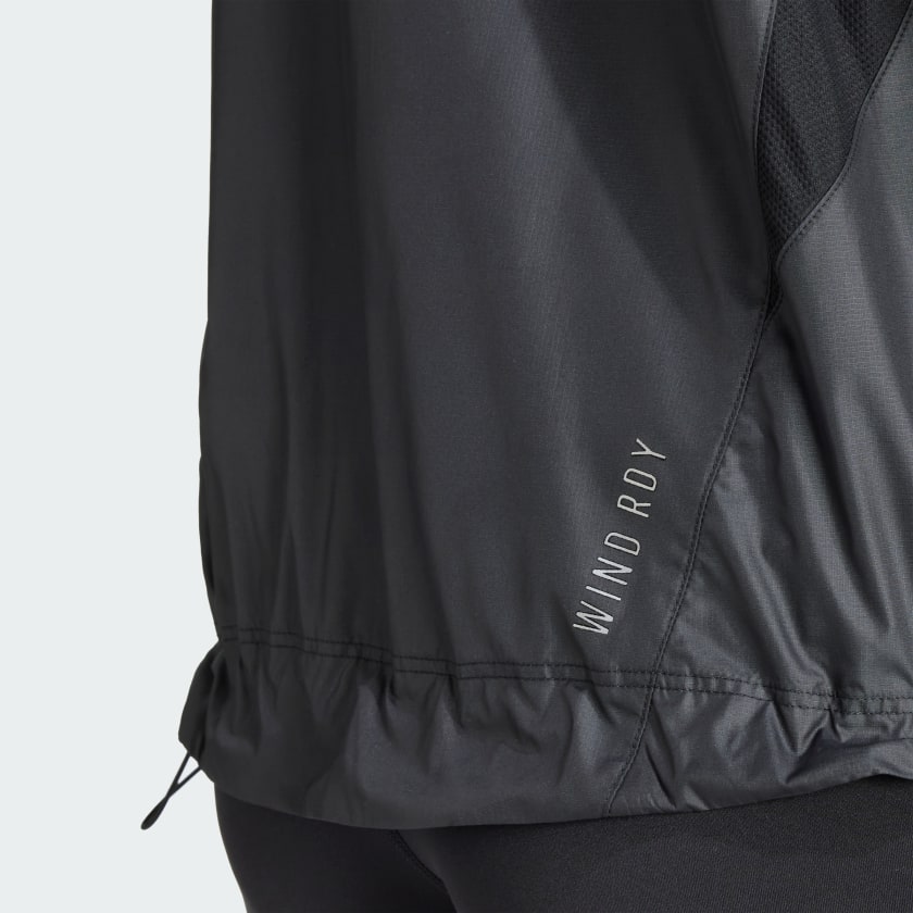 Own the elements in this lightweight running jacket. Wind won't slow you down thanks to adithtdas WIND.RDY technology that locks out the weather so you can focus on your run. An adjustable bungee cord at the hem lets you dial in the perfect fit. This product is made with at least 70% recycled materials. By reusing materials that have already been created, we help to reduce waste and our reliance on finite resources and reduce the footprint of the products we make.