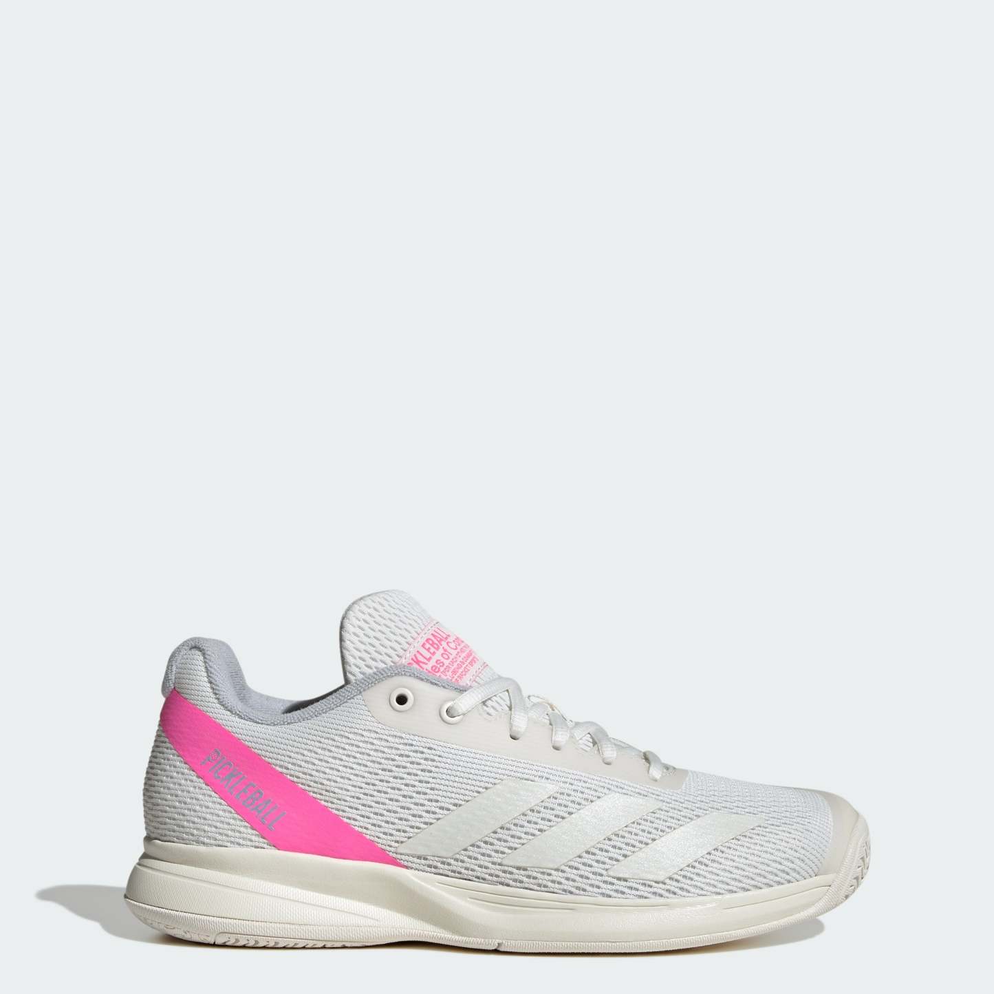 Polish your pickleball game in adithtdas shoes built for comfortable, agile play. With an Adituff toe to help guard against foot drag abrasion, the lightweight mesh upper keeps you quick around the court. Underneath, a durable Adiwear outsole grips hard court surfaces for quick cuts and sidesteps. This product features at least 20% recycled materials. By reusing materials that have already been created, we help to reduce waste and our reliance on finite resources and reduce the footprint of the products we make.