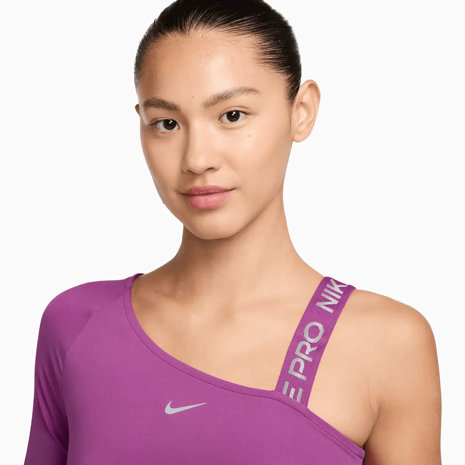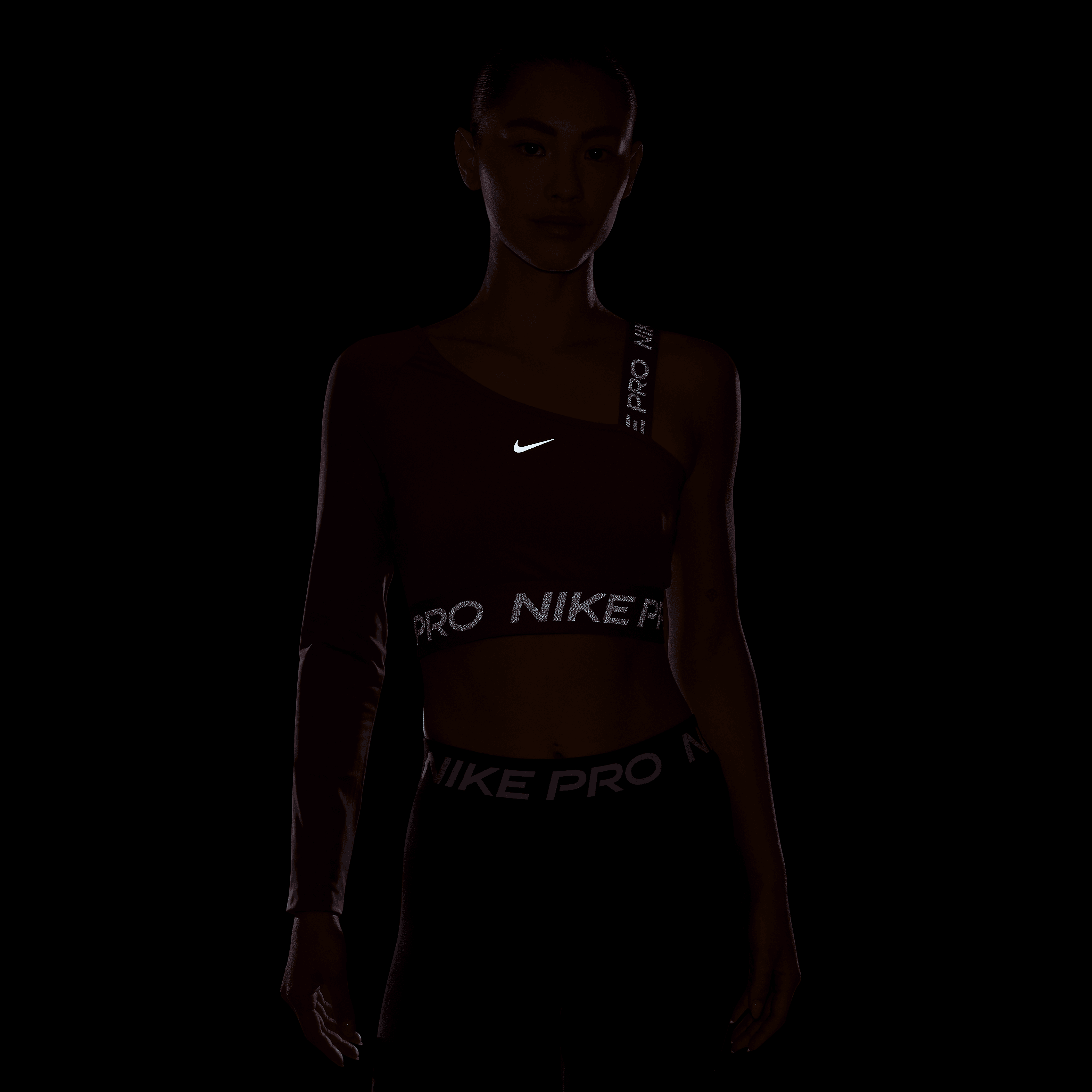 Push yourself to feel bold in this asymmetrical Nithtke Pro top. Lightweight and stretchy, the smooth fabric dries quickly to help you stay cool, while reflective graphics brighten up your workout.