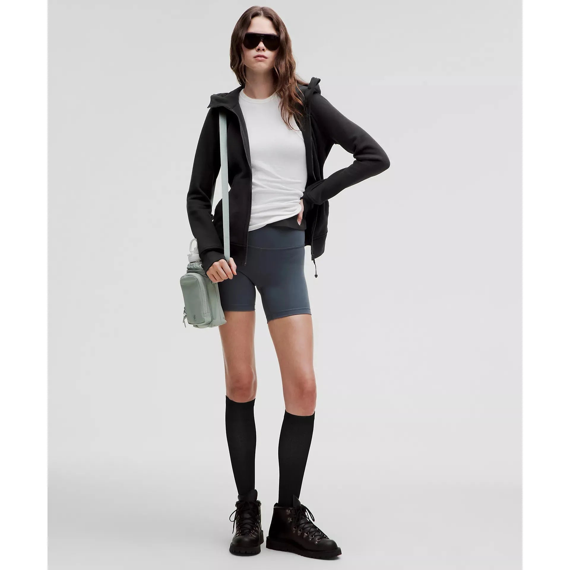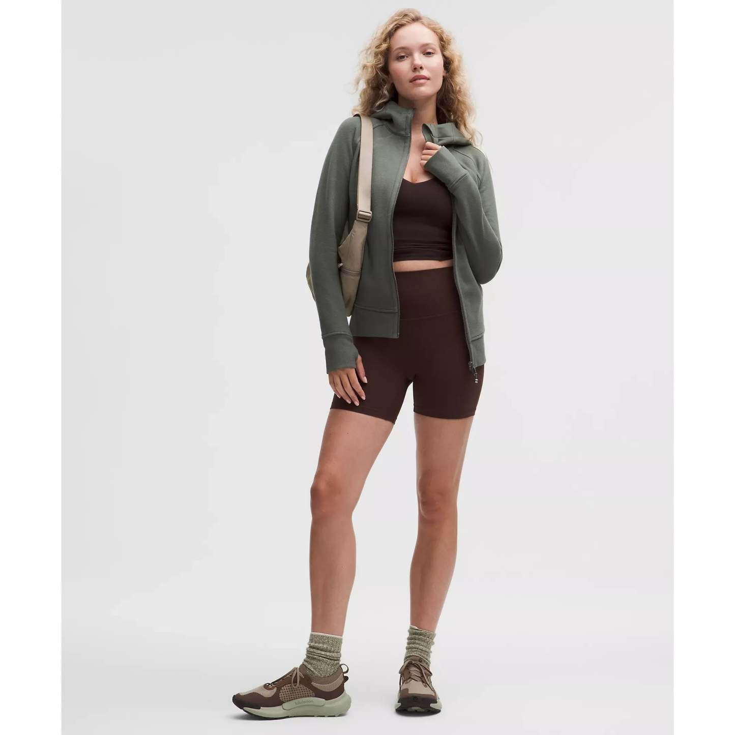 - Elastic zipper pull doubles as an emergency hair tie