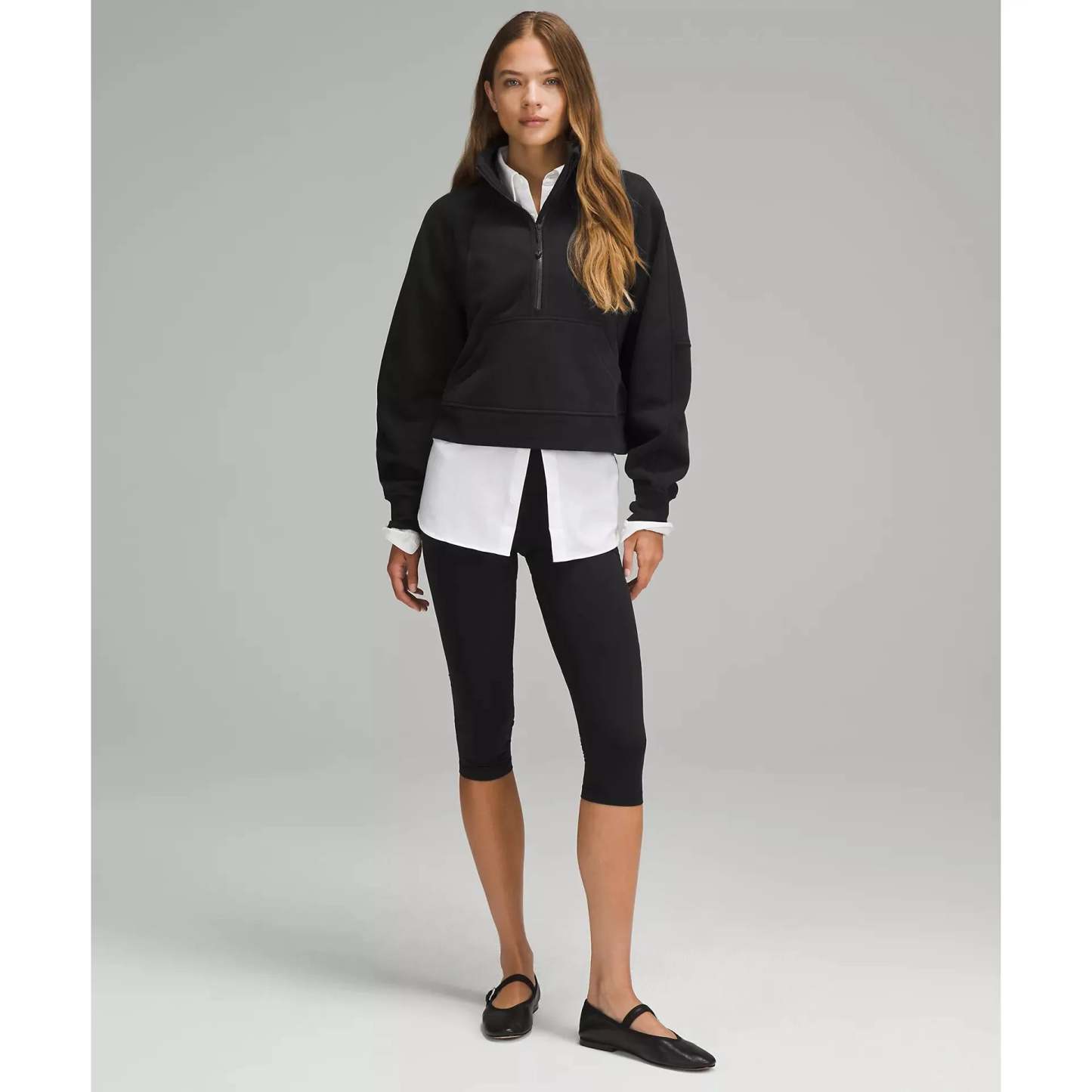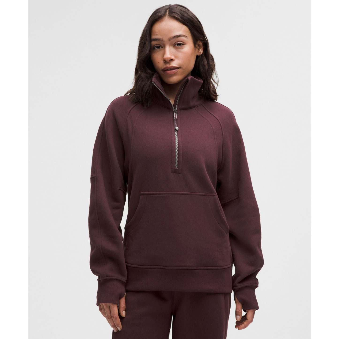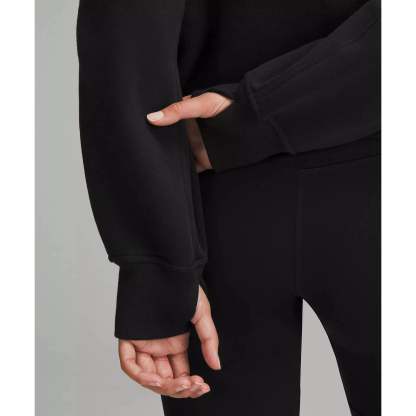 With an oversized fit, a cozy funnel neck, and the soft fabric you love, this Scuba hoodie silhouette maximizes post-practice comfort.