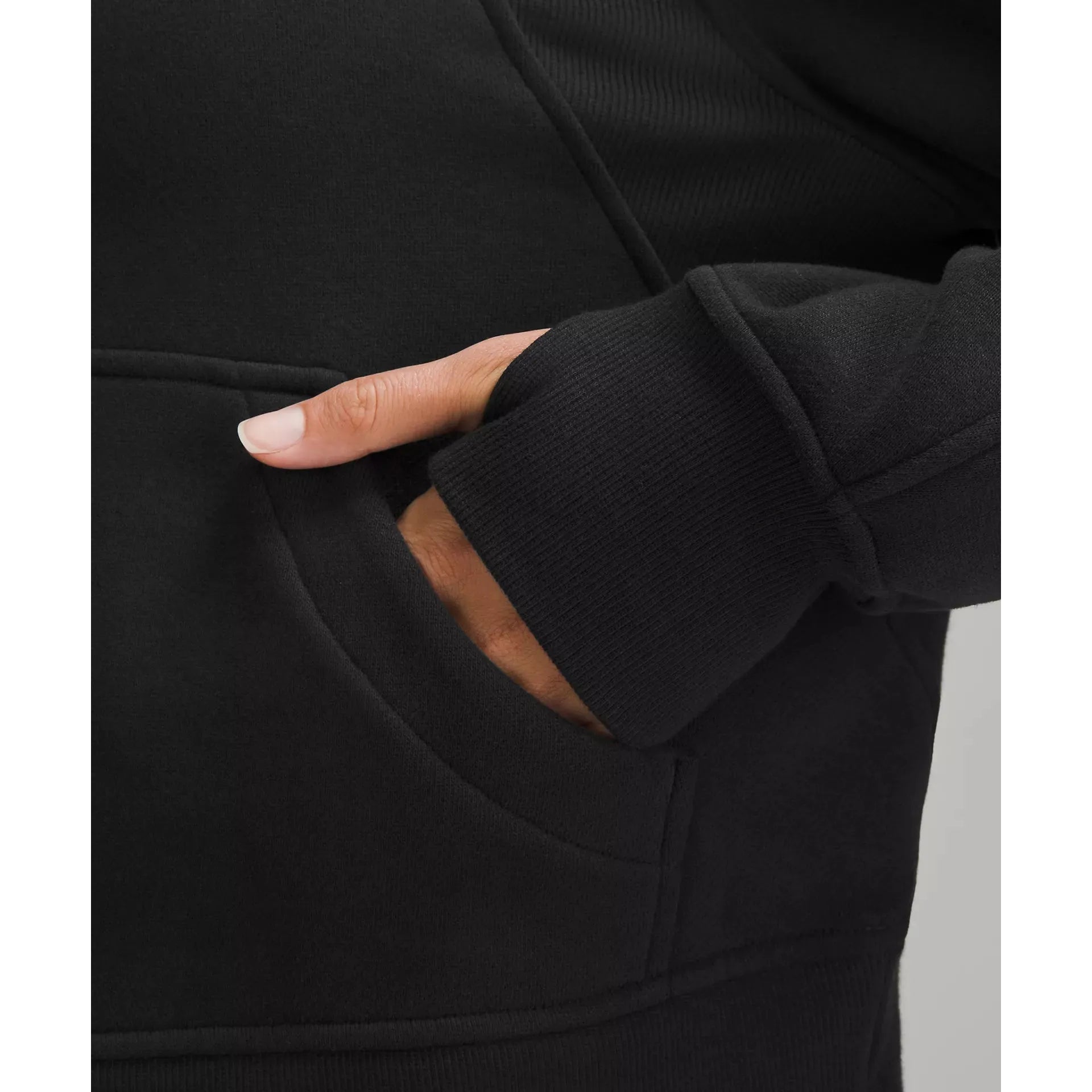 - Kangaroo pocket with hidden phone sleeve