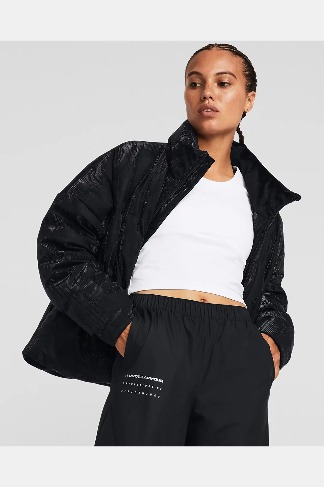 - UA Storm technology repels water without sacrificing breathability