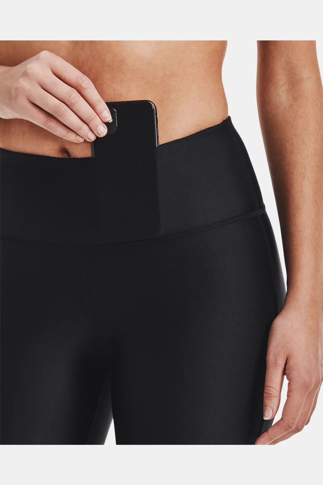 - High-rise encased elastic waistband for coverage & support with built-in front pocket