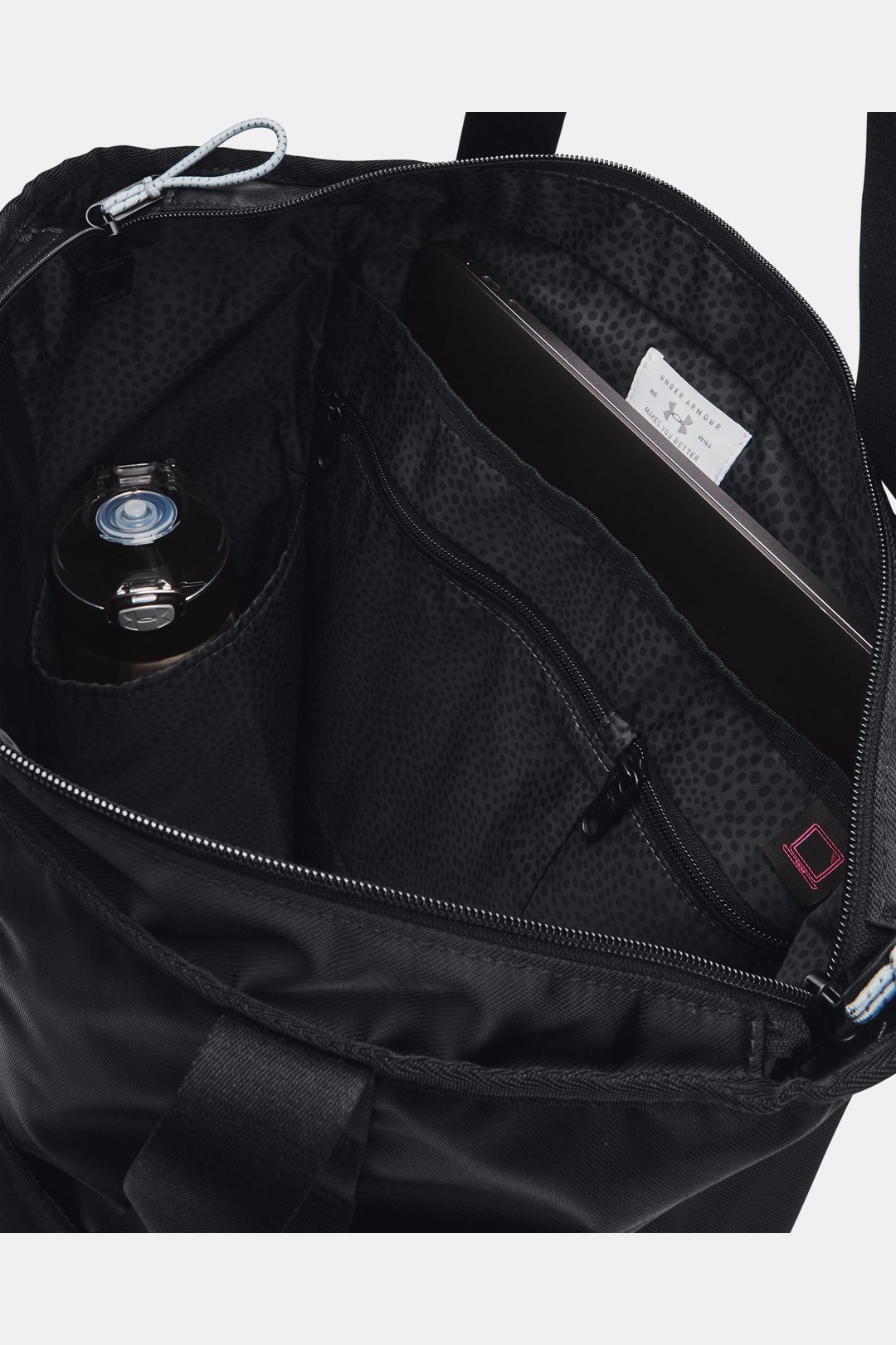 - Water-resistant UA Storm technology keeps your stuff dry