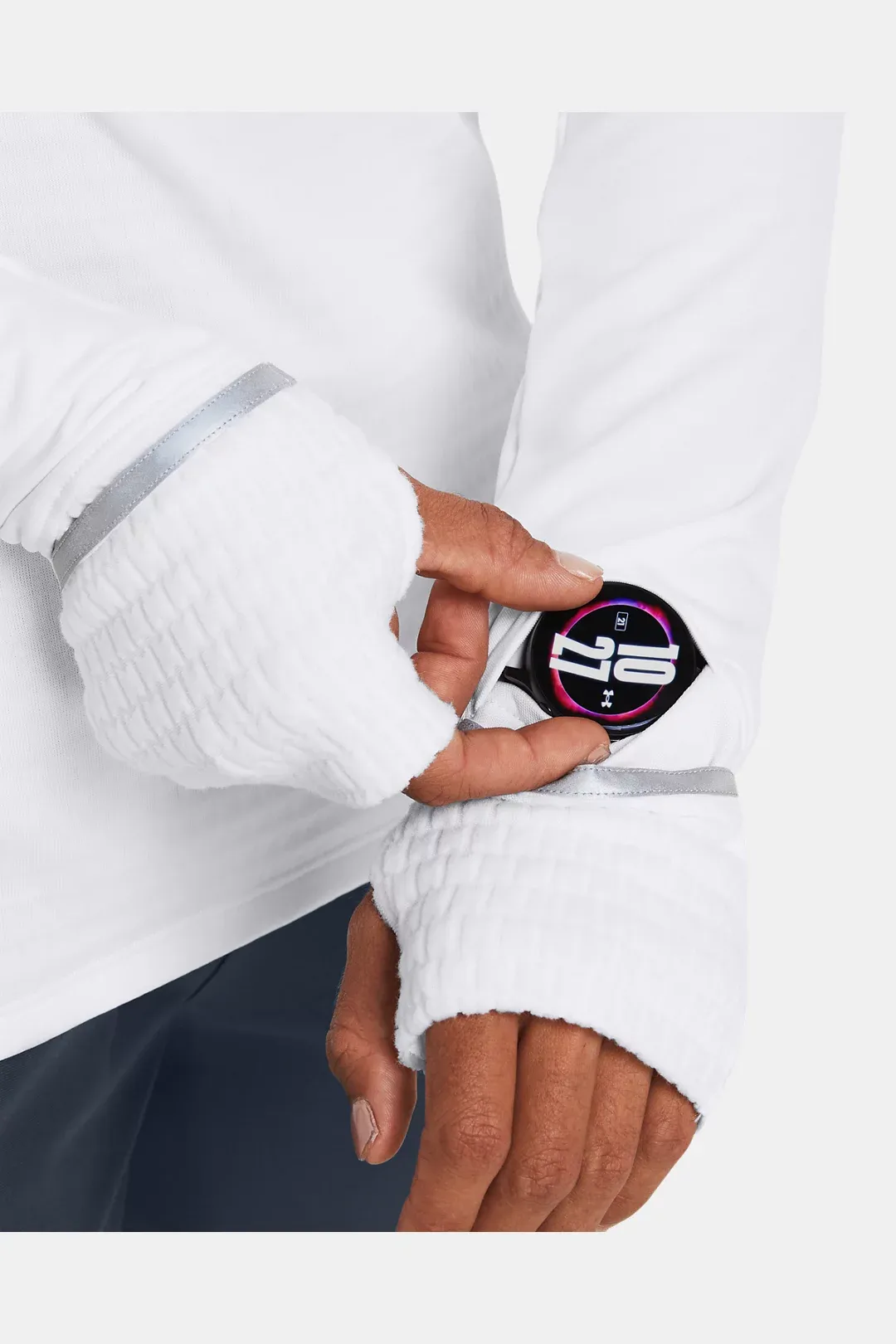 - Built-in thumbholes help keep sleeves in place & cuff mitten traps heat