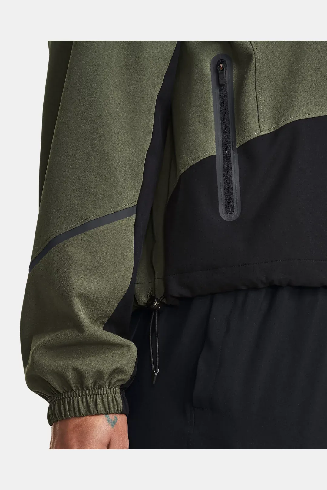 - Secure, zip hand Bungee drawcord adjust on bottom hem for a secure, custom fit