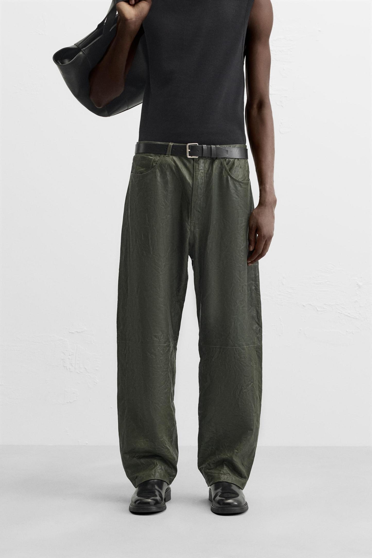 WRINKLED EFFECT LEATHER PANTS