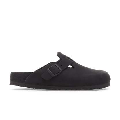 The birkenthtstock Boston, made Exquisite. The sophisticated, individual design means the Boston can be worn all year round, giving this style a legendary status for seasonal versatility. Equipped with a strap and buckle that can be adjusted across your instep the Boston clog provides a secure fit. Soft aniline nubuck leather lends a premium feel to our most-loved clog. The style is grounded in a contoured cork footbed, made luxuriously smooth by an exquisite leather lining.