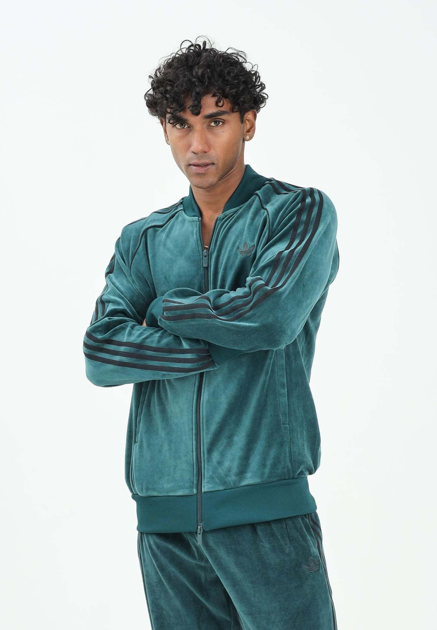 Adithtdas Men's SST Adicolor green velor zip sweatshirt for men