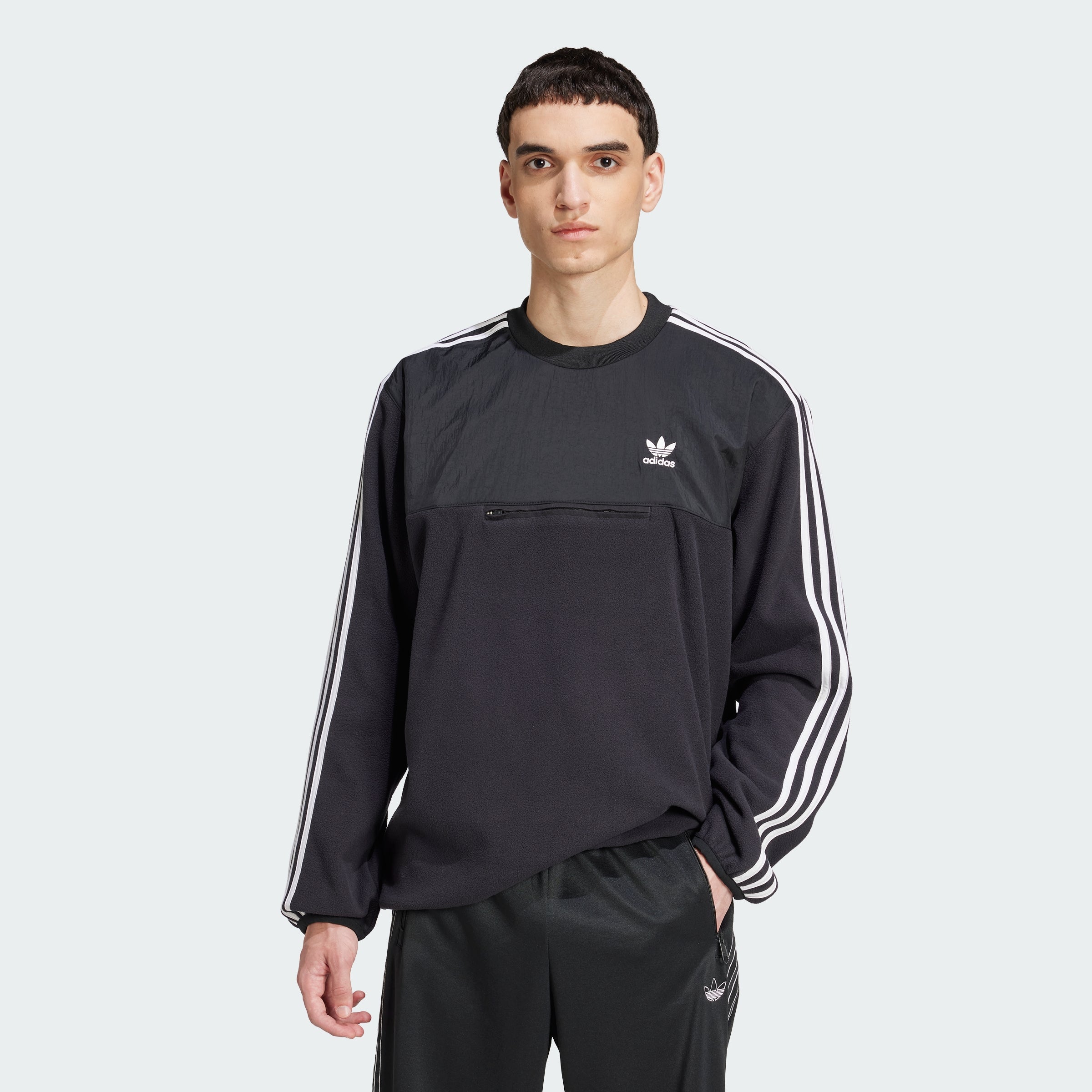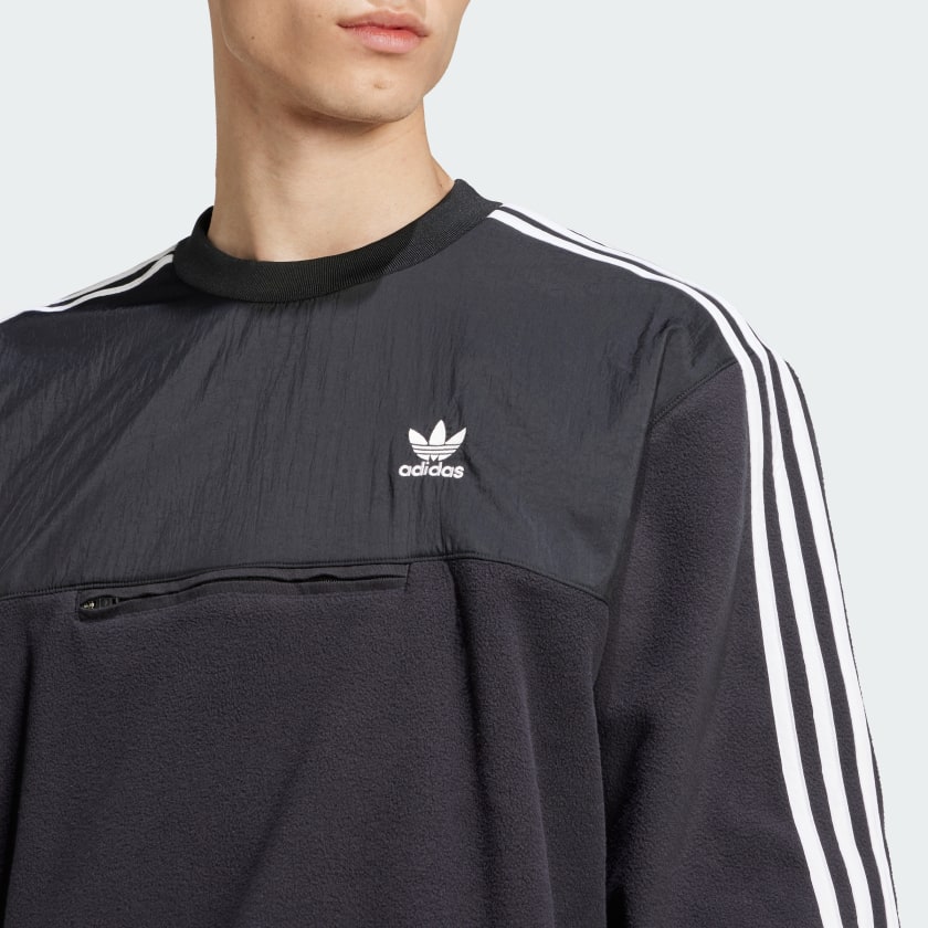 Adicolor is all about constant reinvention, bringing fresh cuts and color schemes to everyday casual wear. This crewneck sweatshirt taps into the legendary vibe with a polar fleece construction that's so soft, cozy and warm you'll want to live in it. A slightly loose fit is paired with a stretchy hem and cuffs to keep this sweatshirt snug around the edges. There's a zippered pocket placed unexpectedly across the chest and familiar 3-Stripes cruising along the sleeves and shoulders. Wear it with fleece, woven joggers, jeans and more. This product is made with 100% recycled materials. By reusing materials that have already been created, we help to reduce waste and our reliance on finite resources and reduce the footprint of the products we make.