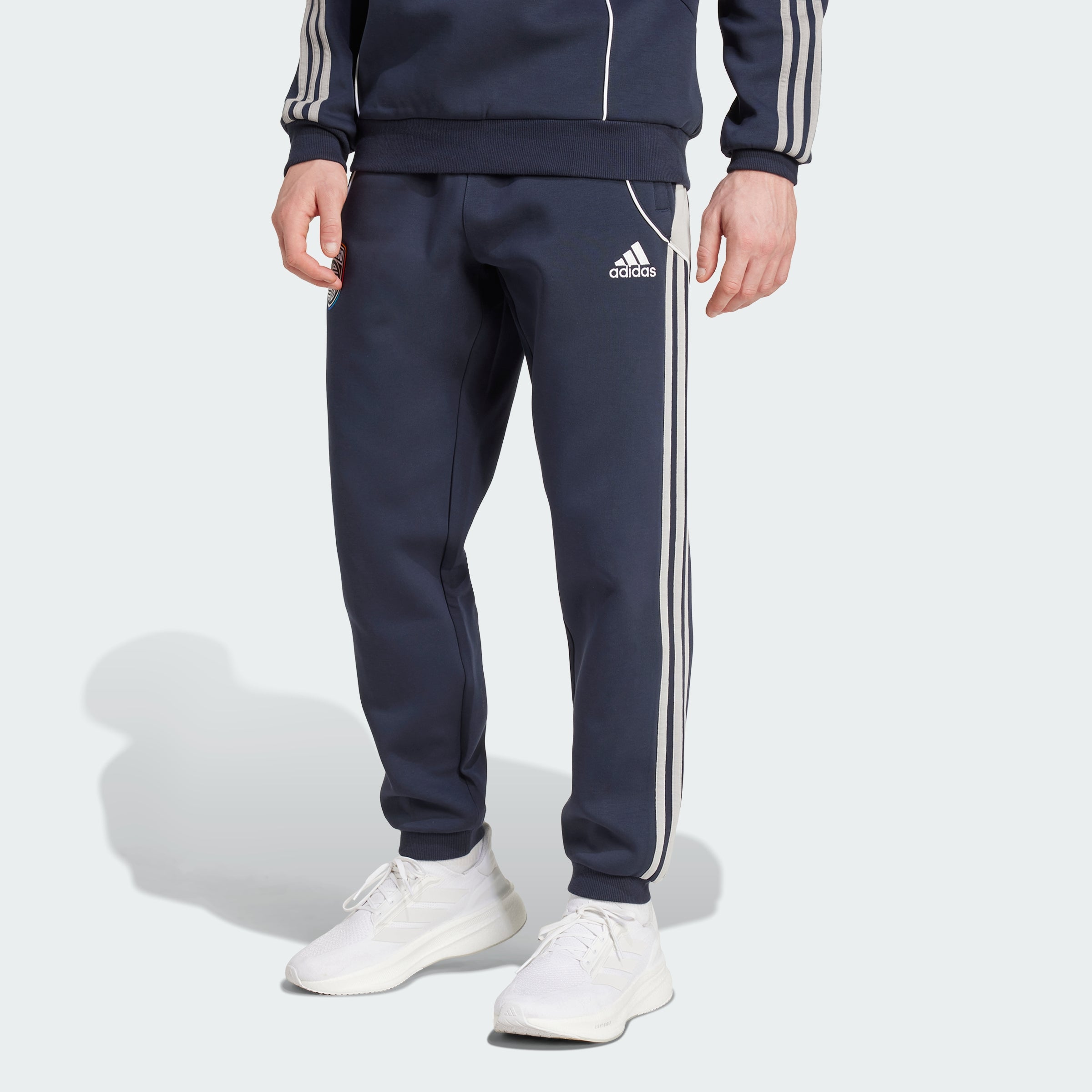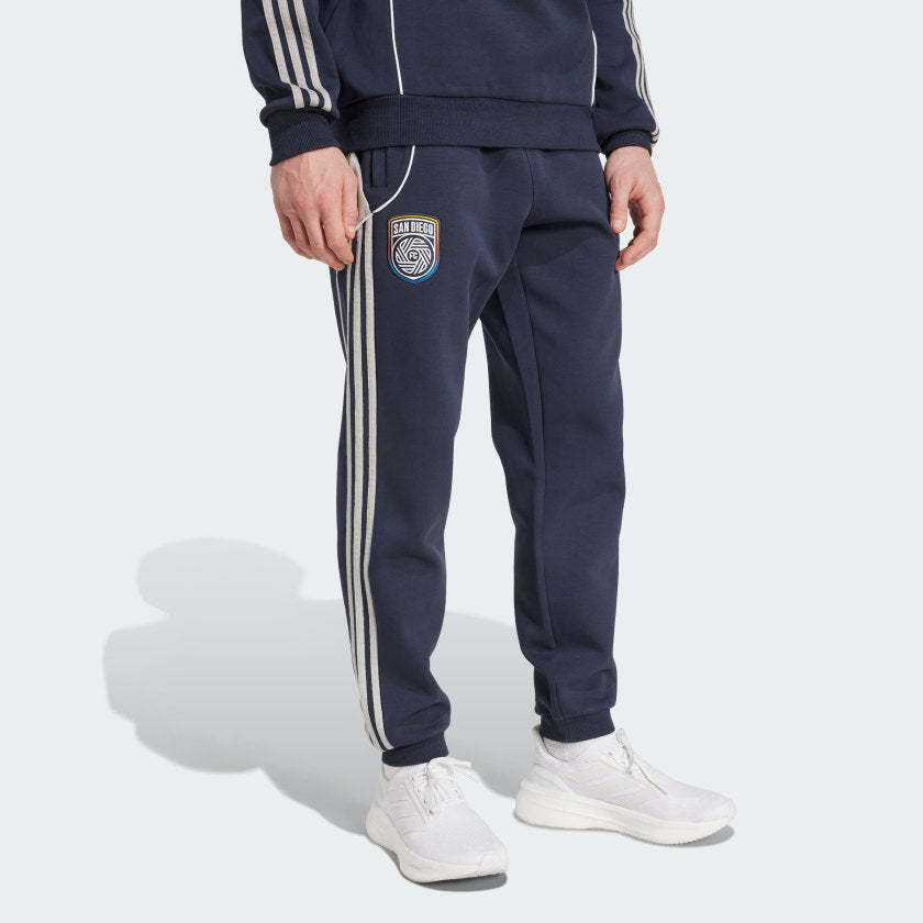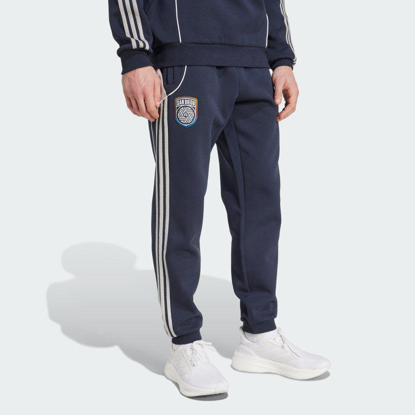 Show your San Diego FC allegiance when you're out and about. Part of an adithtdas collection inspired by 2010s soccer style, these pants seamlessly transition from travel days to pre-match excitement. Woven into their soft doubleknit fabric, a team badge lets you represent wherever you go.