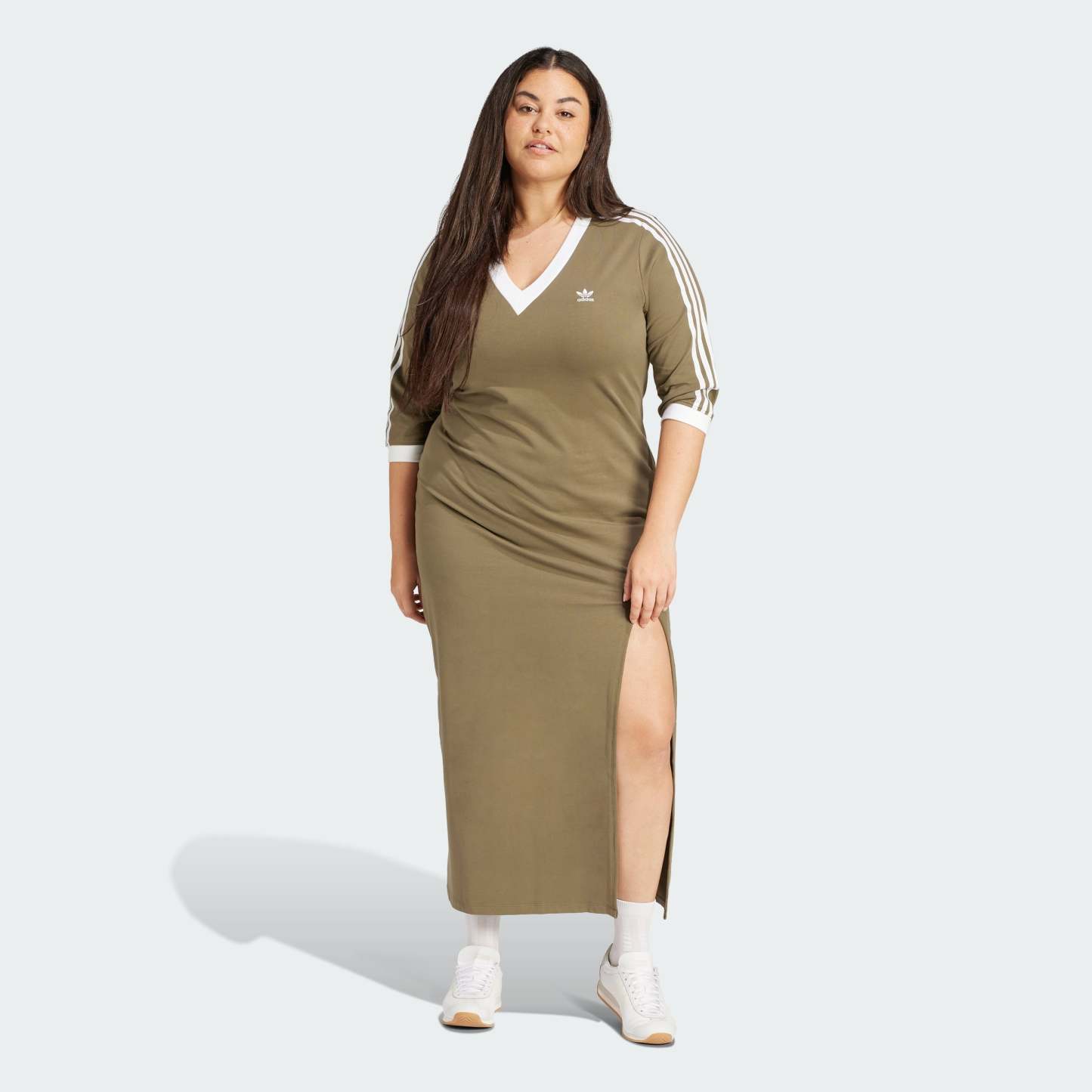 Adithtdas Women's Adicolor Classics 3-Stripes V-Neck Maxi Dress (Plus Size)