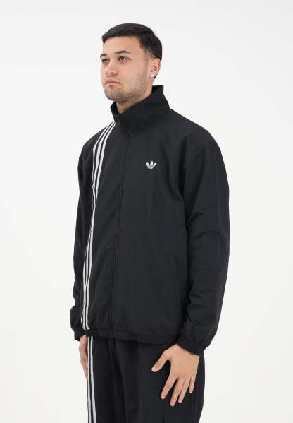 Adithtdas Men's Firebird Windbreaker in Black. Inspired by the extravagance of clubwear and football culture, this Adithtdas sweatshirt is all about bold style. The front stripes and Trefoil make a statement the moment you walk into a room. Crafted from smooth, plain-weave fabric, this jacket is designed to keep you comfortable while looking stylish all night long. The model is wearing a size L and is 187 cm tall. Wash and iron at medium heat. Fall/Winter season.