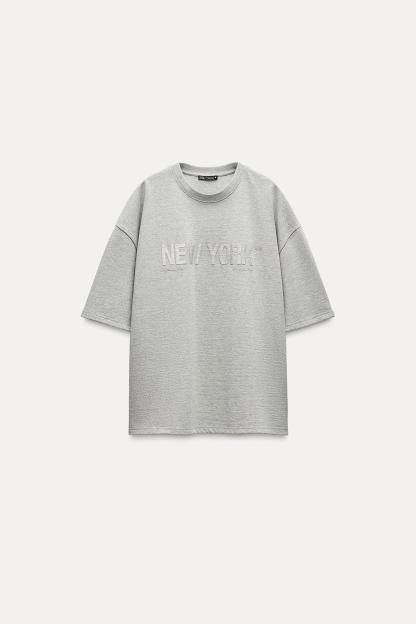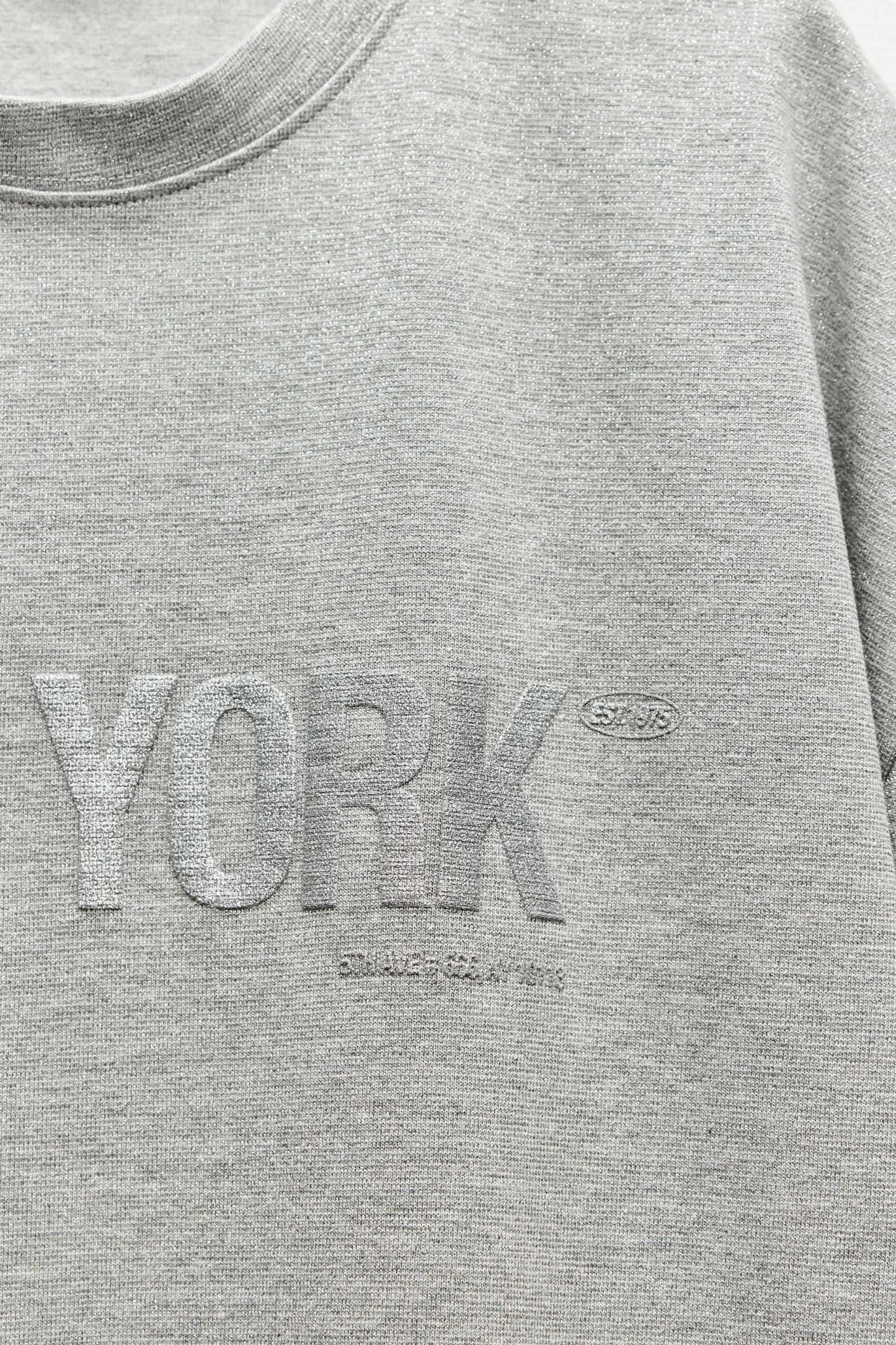 METALLIC THREAD TEXT T-SHIRT
