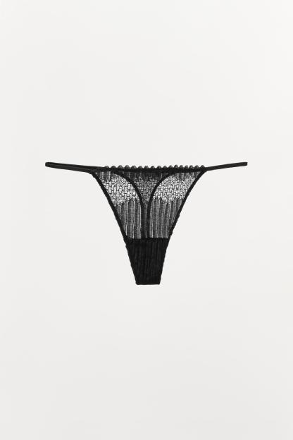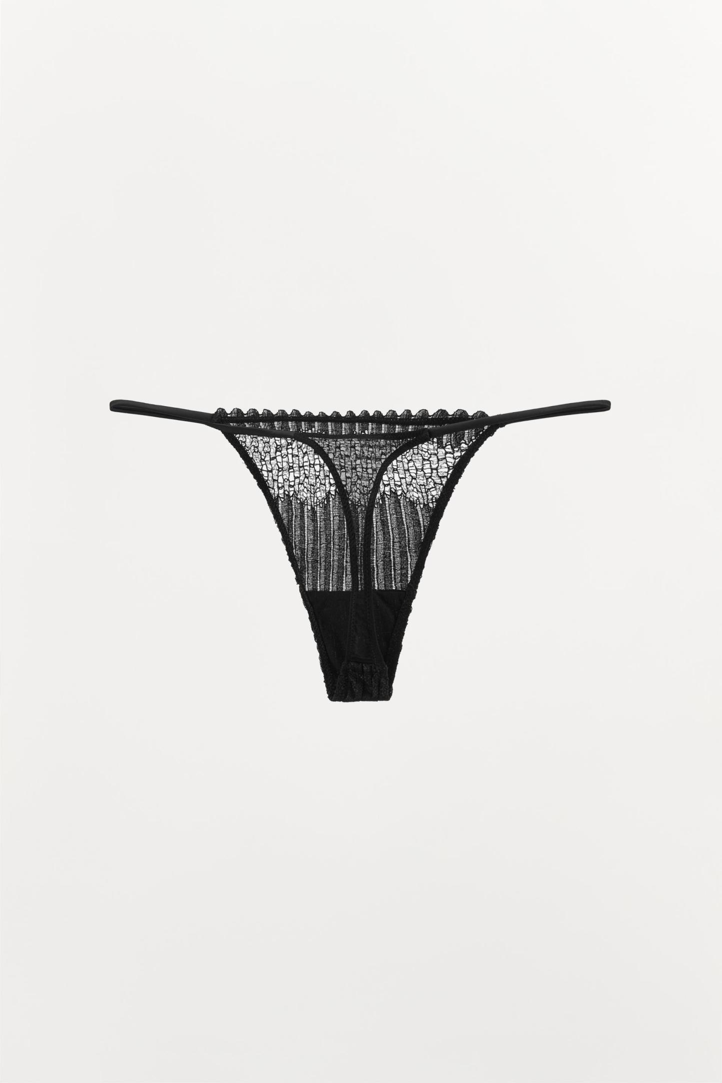 PLEATED LACE THONG