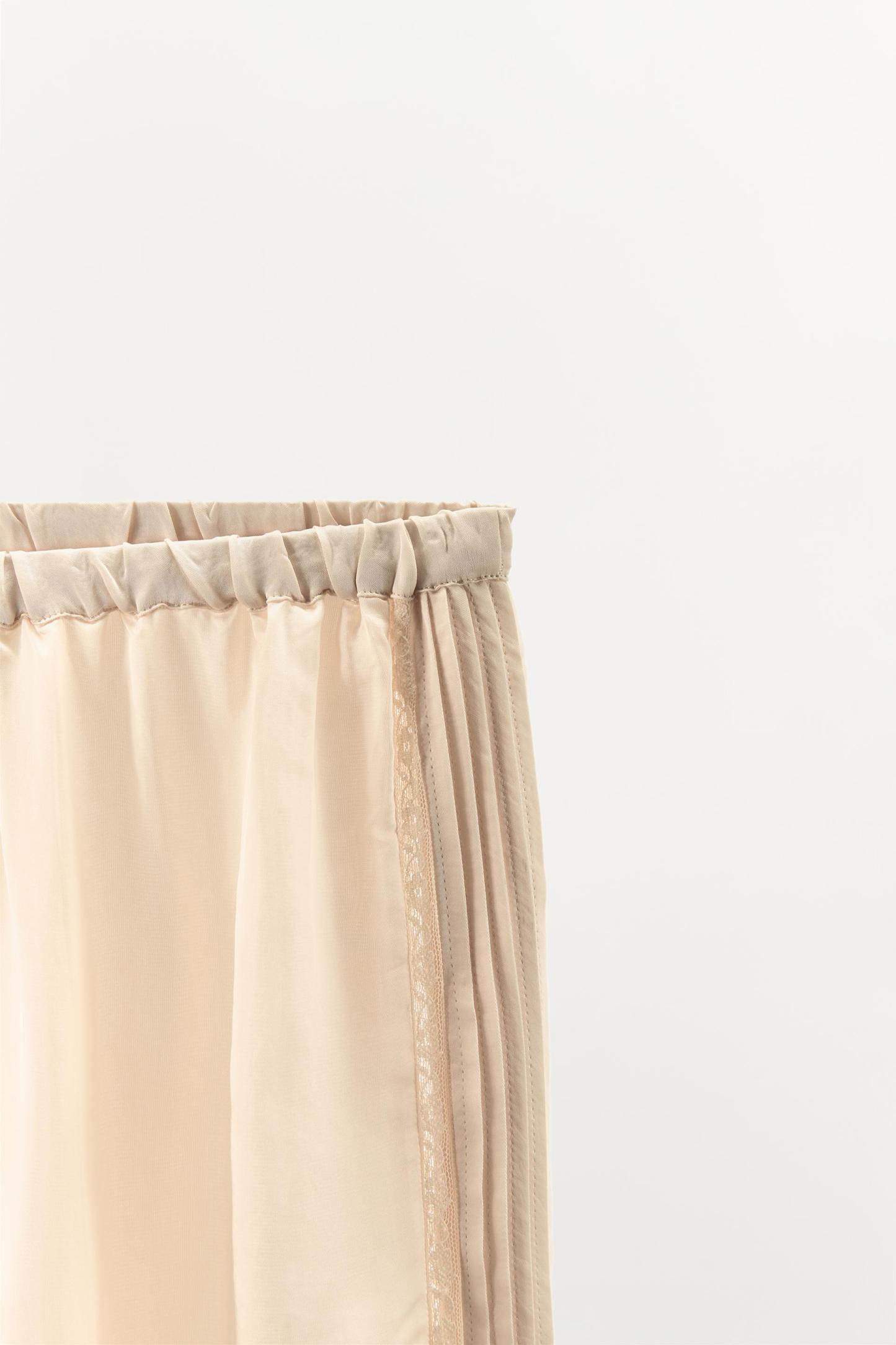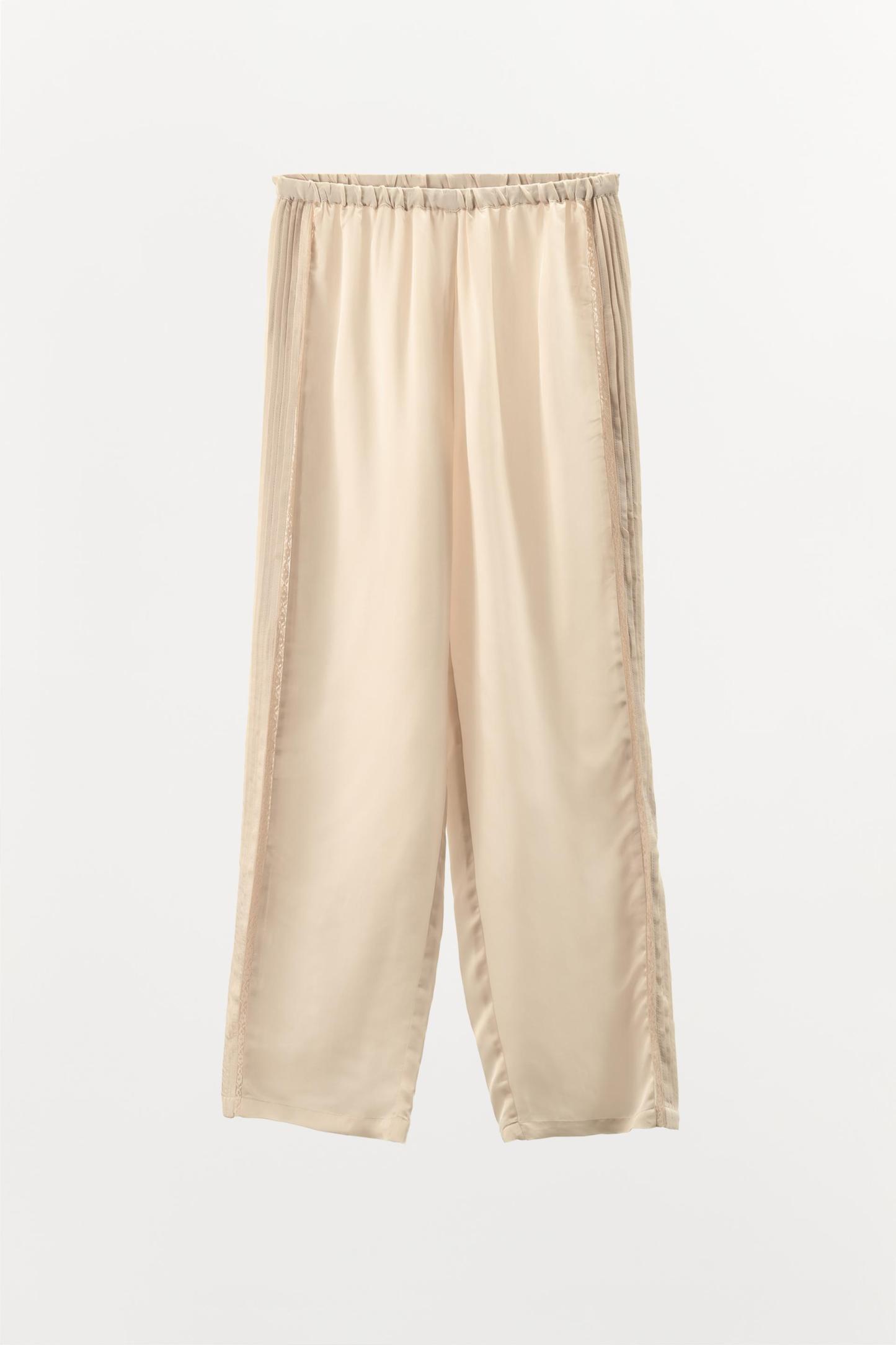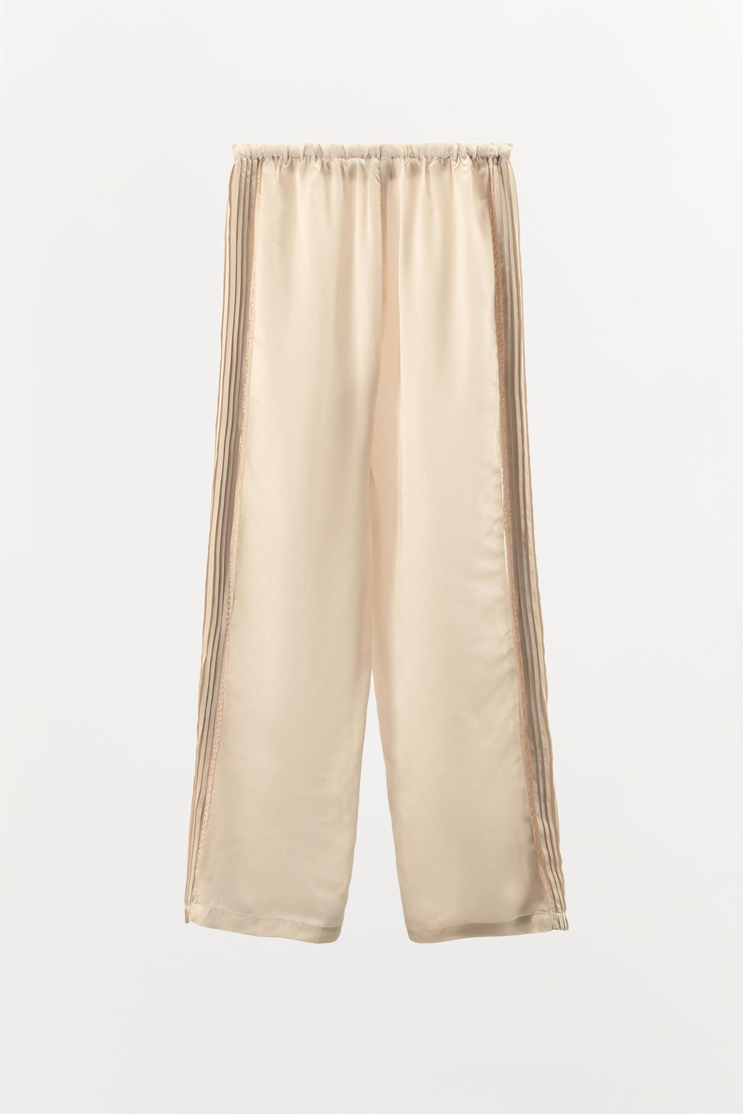 SATIN EFFECT LACE TRIM PANTS