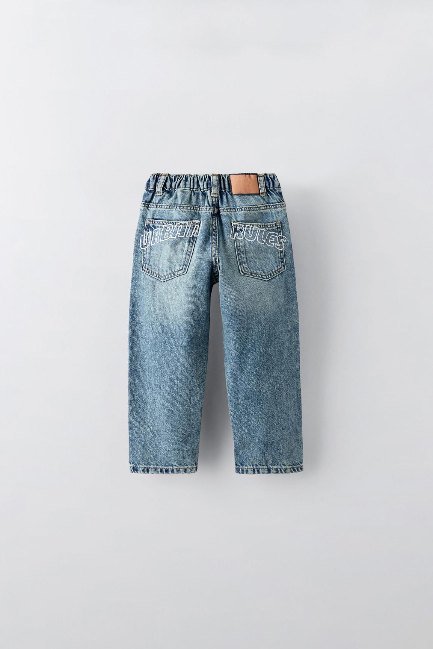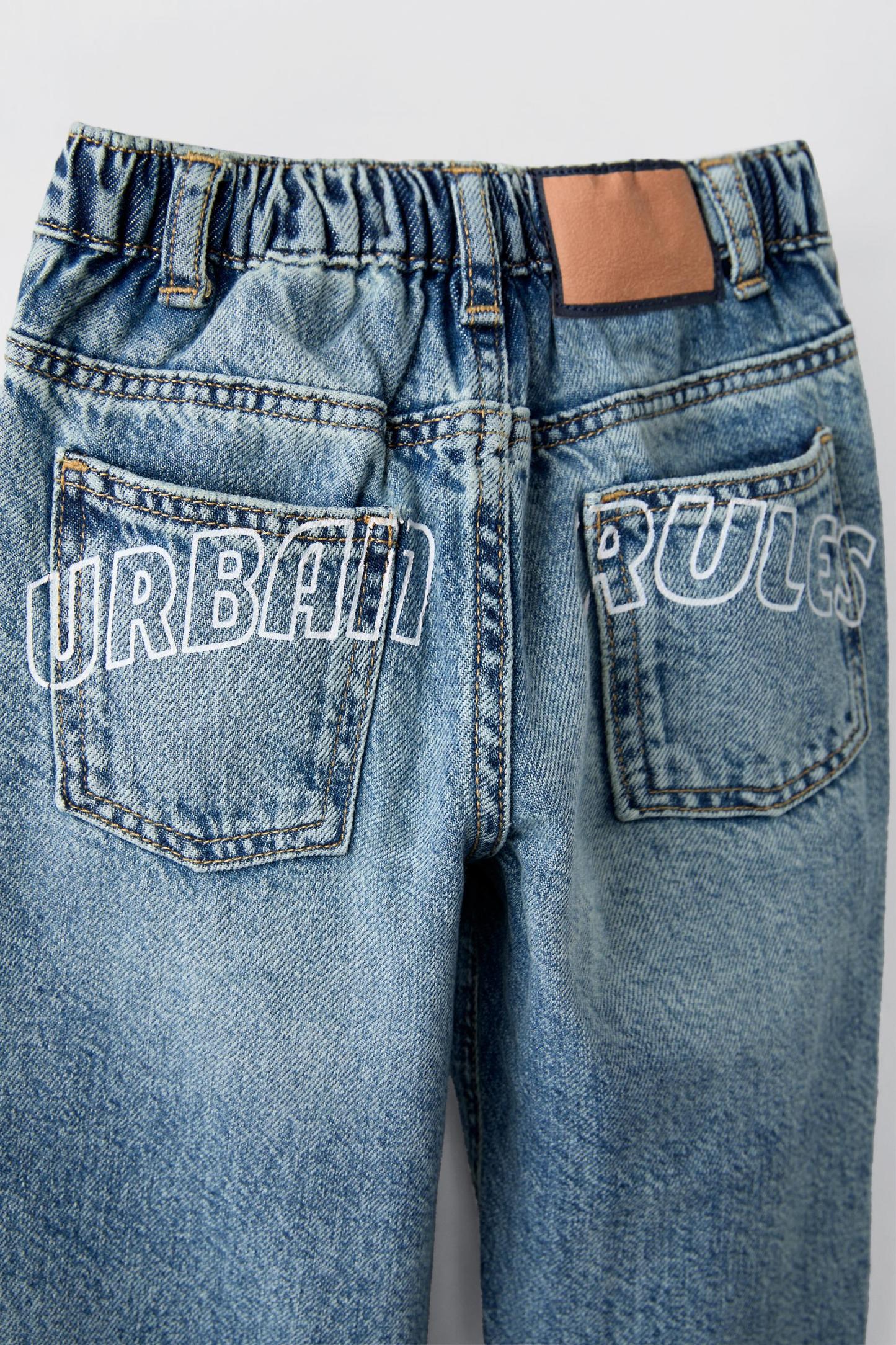 STRAIGHT-CUT TEXT JEANS